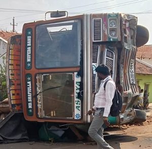 ಹುಳಿಯಾರು ನಾಫೆಡ್ ಕೇಂದ್ರದಿಂದ ರಾಗಿ ತುಂಬಿಕೊಂಡು ಶಿರಾ ಗೋಡನ್ ಗೆ ಹೋಗುತ್ತಿದ್ದ ಲಾರಿ ಯಗಚೀಹಳ್ಳಿ ಬಳಿ ಗಾಣದಾಳು ಸೊಸೈಟಿಯಿಂದ ರೇಷನ್ ತೆಗೆದುಕೊಂಡು ತನ್ನೂರಾದ ಕೆ.ಎಸ್.ಪಾಳ್ಯಕ್ಕೆ ಟಿವಿಎಸ್ ನಲ್ಲಿ ಹೋಗುತ್ತಿದ್ದ ಅಮೀರ್ (72) ಅವರ ಮೇಲೆ ಬಿದ್ದಿದೆ, ಪರಿಣಾಮ ಅಮೀರ್ ದೇಹ ಸೇರಿದಂತೆ ಟಿವಿಎಸ್ ಸಹ ಗುರುತೇ ಸಿಗದಂತೆ ನಜ್ಜುಗುಜ್ಜಾಗಿದೆ. ಅಲ್ಲದೆ ಲಾರಿಯಲ್ಲಿ ತುಂಬಿದ್ದ ನೂರಾರು ರಾಗಿ ಚೀಲಗಳು ರಸ್ತೆಯ ತುಂಬೆಲ್ಲ ಚೆಲ್ಲಾಪಿಲ್ಲಿಯಾಗಿ ಬಿದ್ದಿದೆ, ಅದೃಷ್ಟವಶಾತ್ ಈ ರಾಗಿ ಚೀಲಗಳು ಮತ್ತಾರ ಪ್ರಾಣಾಪಾಯ ಮಾಡಿಲ್ಲ ಎನ್ನುವುದು ಸಮಾಧನಕ ಸಂಗತಿಯಾಗಿದ್ದರೂ ಜನರು ಭಯ ಭೀತರಾಗುವಷ್ಟು ಭೀಕರವಾದ ಅಪಘಾತವಾಗಿದೆ.