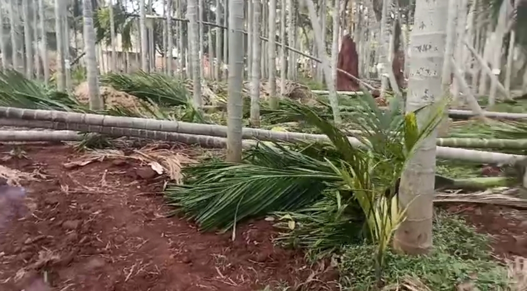 ಗಾಳಿ-ಮಳೆಗೆ ನೆಲಕ್ಕುರುಳಿದ ಅಡಿಕೆ ಮರಗಳು