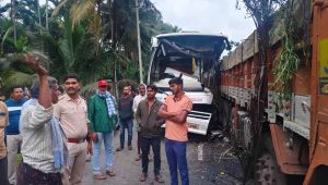ನಿಂತಿದ್ದ ಲಾರಿಗೆ ಬಸ್ ಡಿಕ್ಕಿ: ಇಬ್ಬರ ಸಾವು