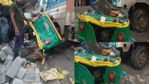 ಮಾಹಿತಿಯ ಪ್ರಕಾರ, ಕಂಟೇನರ್ ಲಾರಿಯ ಸ್ಟೀರಿಂಗ್ ಕಟ್ ಆಗಿದ್ದರಿಂದ ಚಾಲಕ ನಿಯಂತ್ರಣ ಕಳೆದುಕೊಂಡಿದ್ದಾನೆ. ಮೊದಲು ಆಟೋಗೆ ಡಿಕ್ಕಿ ಹೊಡೆದ ಬಳಿಕ ಲಾರಿ, ಆಟೋ ಸಮೇತ ನಿರ್ಮಾಣ ಹಂತದ ಕಟ್ಟಡಕ್ಕೆ ಡಿಕ್ಕಿ ಹೊಡೆದು ನಿಂತಿದೆ. ಅಪಘಾತದ ತೀವ್ರತೆಗೆ ಆಟೋ ಸಂಪೂರ್ಣ ನಜ್ಜುಗುಜ್ಜಾಗಿದೆ.