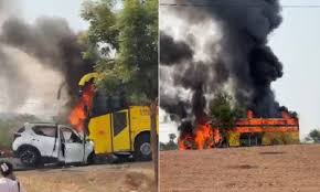 ಹೊತ್ತಿ ಉರಿದ ಬಸ್ಸು-ಕಾರು: 7 ಮಂದಿ ಸಜೀವ ದಹನ