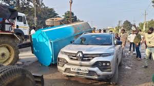 ನೆಲಮಂಗಲದಲ್ಲಿ ಕಾರಿನ ಮೇಲೆ ಬಿದ್ದ ವಾಟರ್ ಟ್ಯಾಂಕರ್